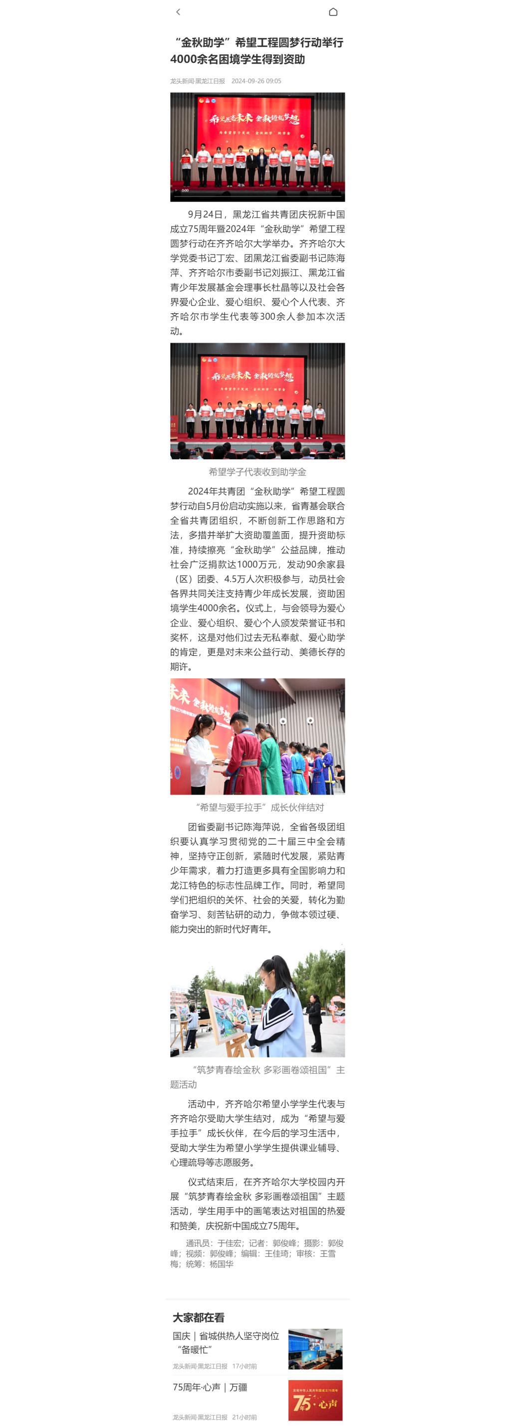 上一条:【龙头新闻·生活报】“金秋助学”希望工程圆梦行动举行 4000余名困境学生得到资助