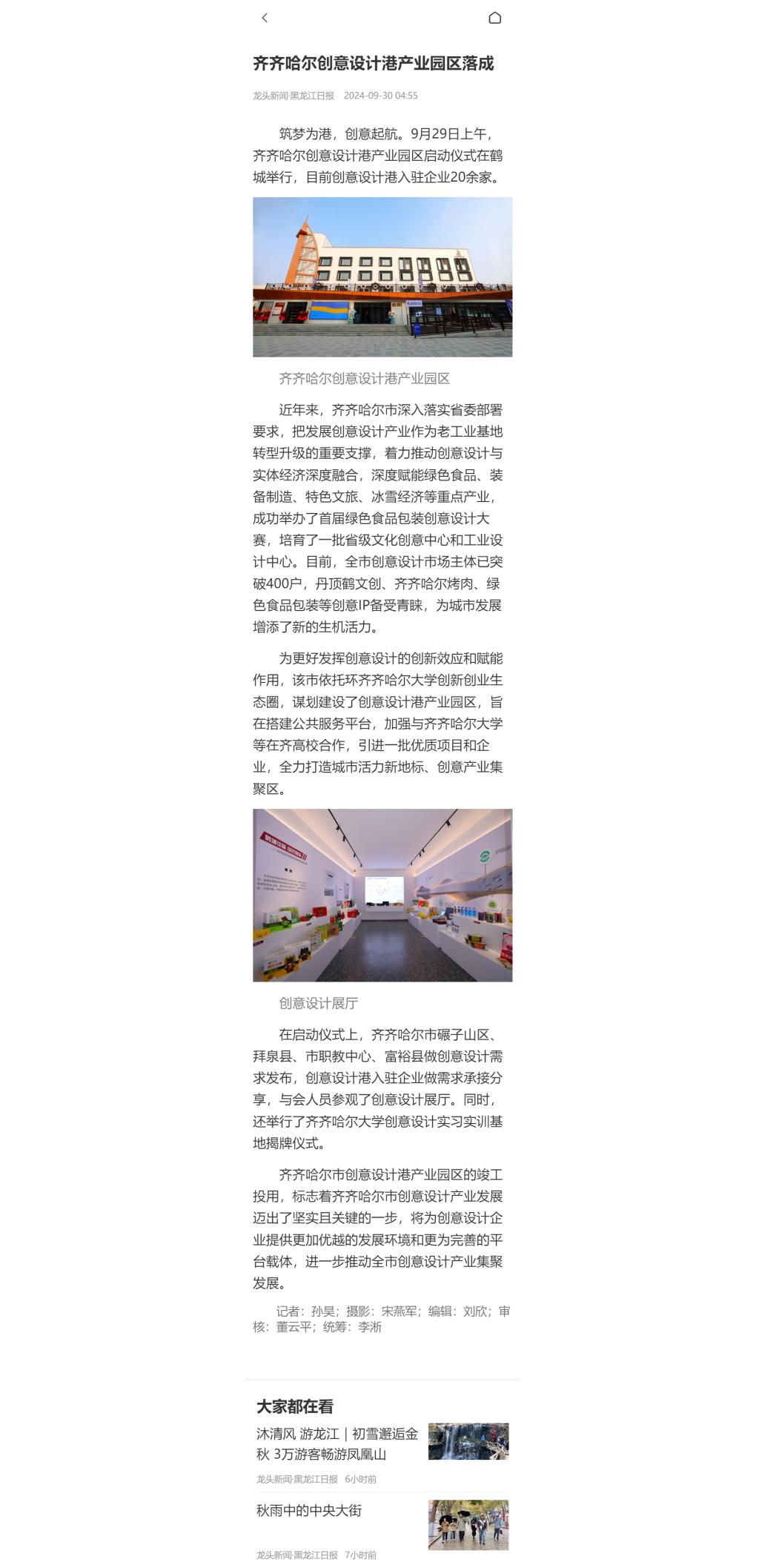 【龙头新闻·黑龙江日报】齐齐哈尔创意设计港产业园区落成