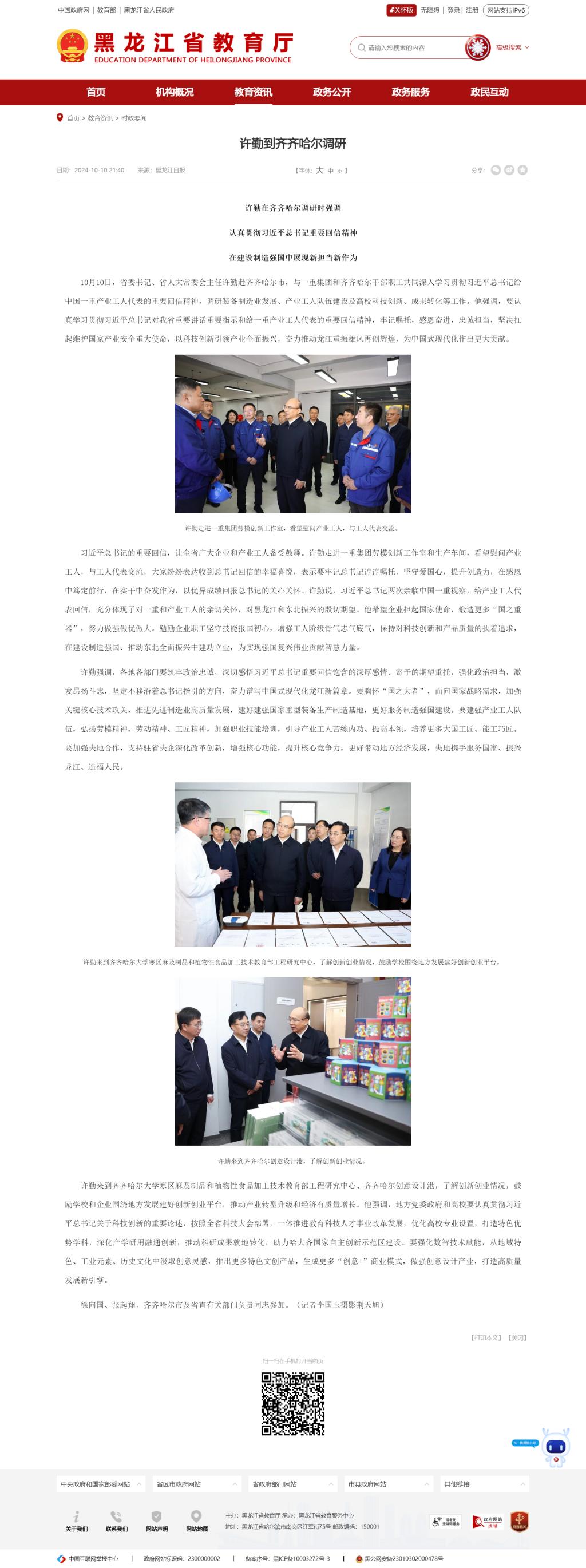 【龙头新闻·黑龙江日报】许勤到齐齐哈尔调研