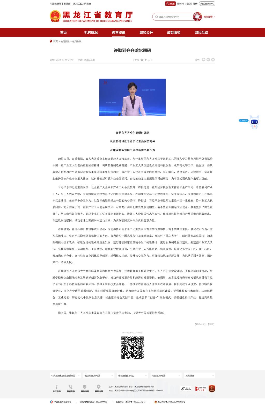 【黑龙江省教育厅】许勤到齐齐哈尔调研