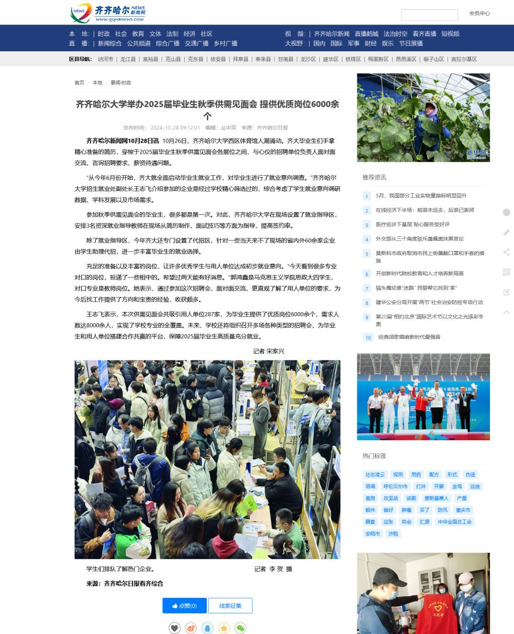 【齐齐哈尔新闻】万象城AWC官方网站举办2025届毕业生秋季供需见面会提供优质岗位6000余个