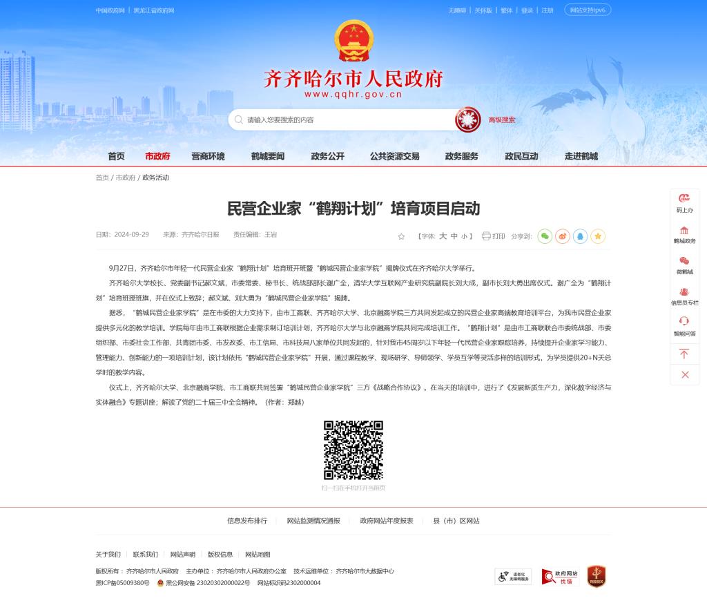【齐齐哈尔日报】民营企业家“鹤翔计划”培育项目启动