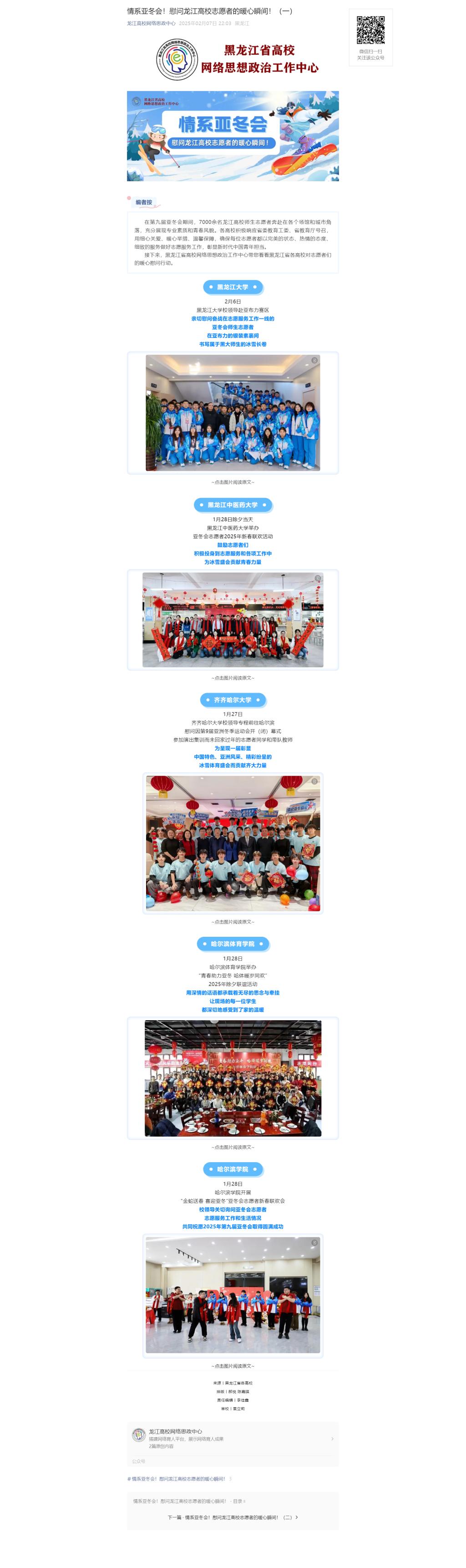 【龙江高校网络思政中心】情系亚冬会!慰问龙江高校志愿者的暖心瞬间!(一)