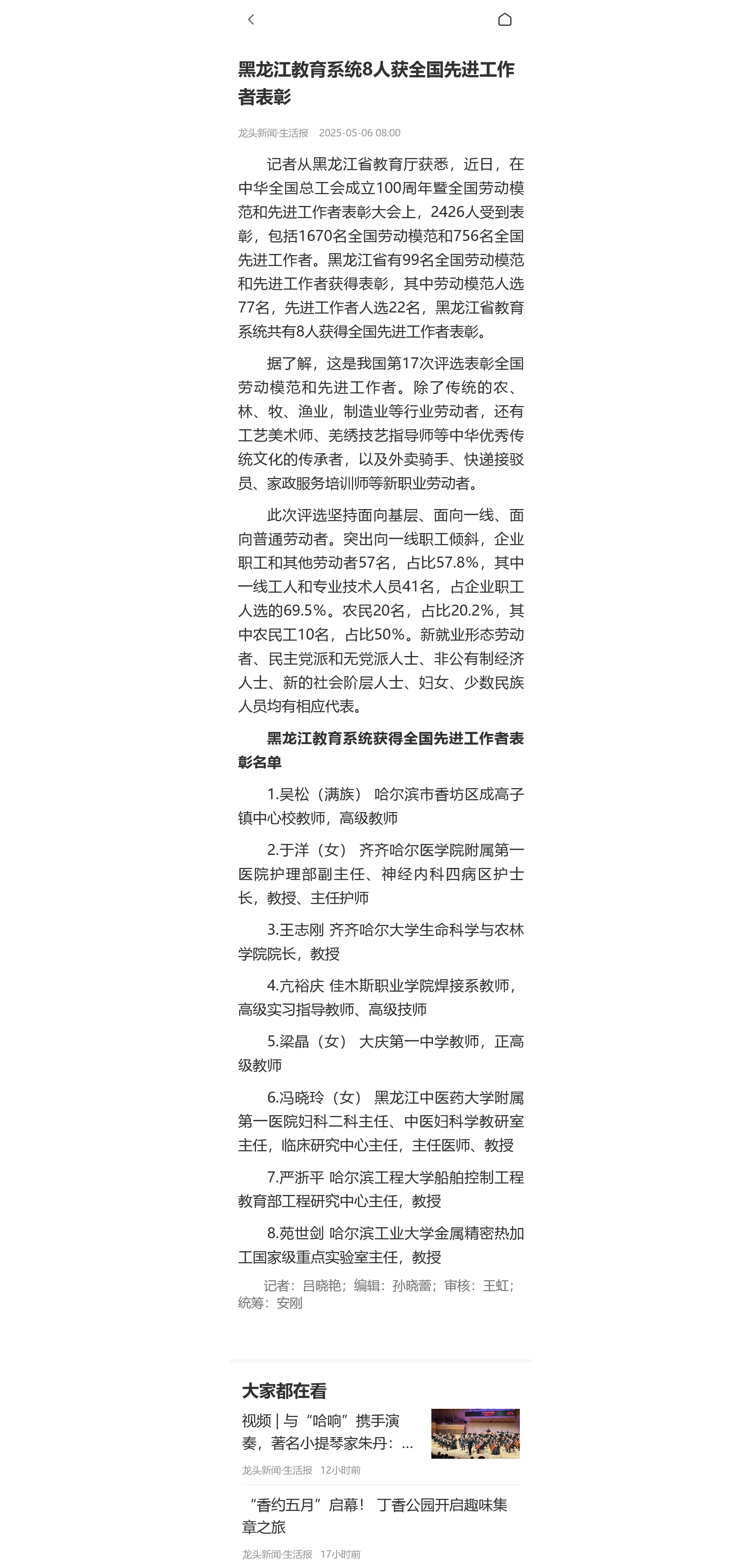 【龙头新闻】黑龙江教育系统8人获全国先进工作者表彰