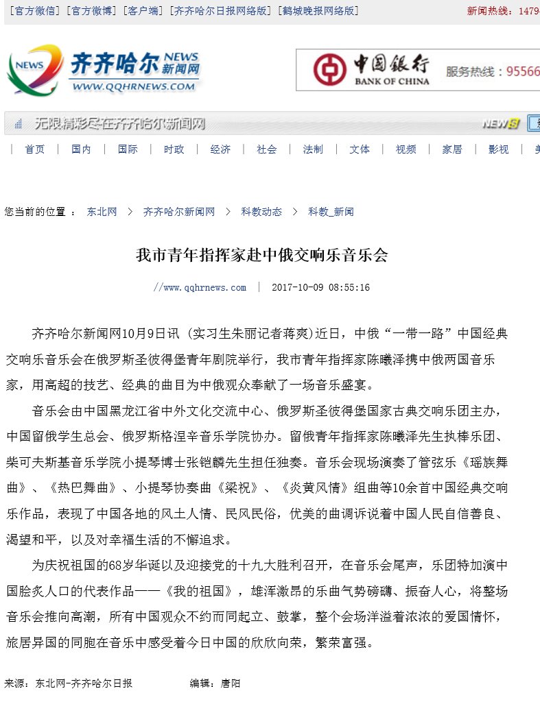 【齐齐哈尔日报】我市青年指挥家赴中俄交响乐音乐会