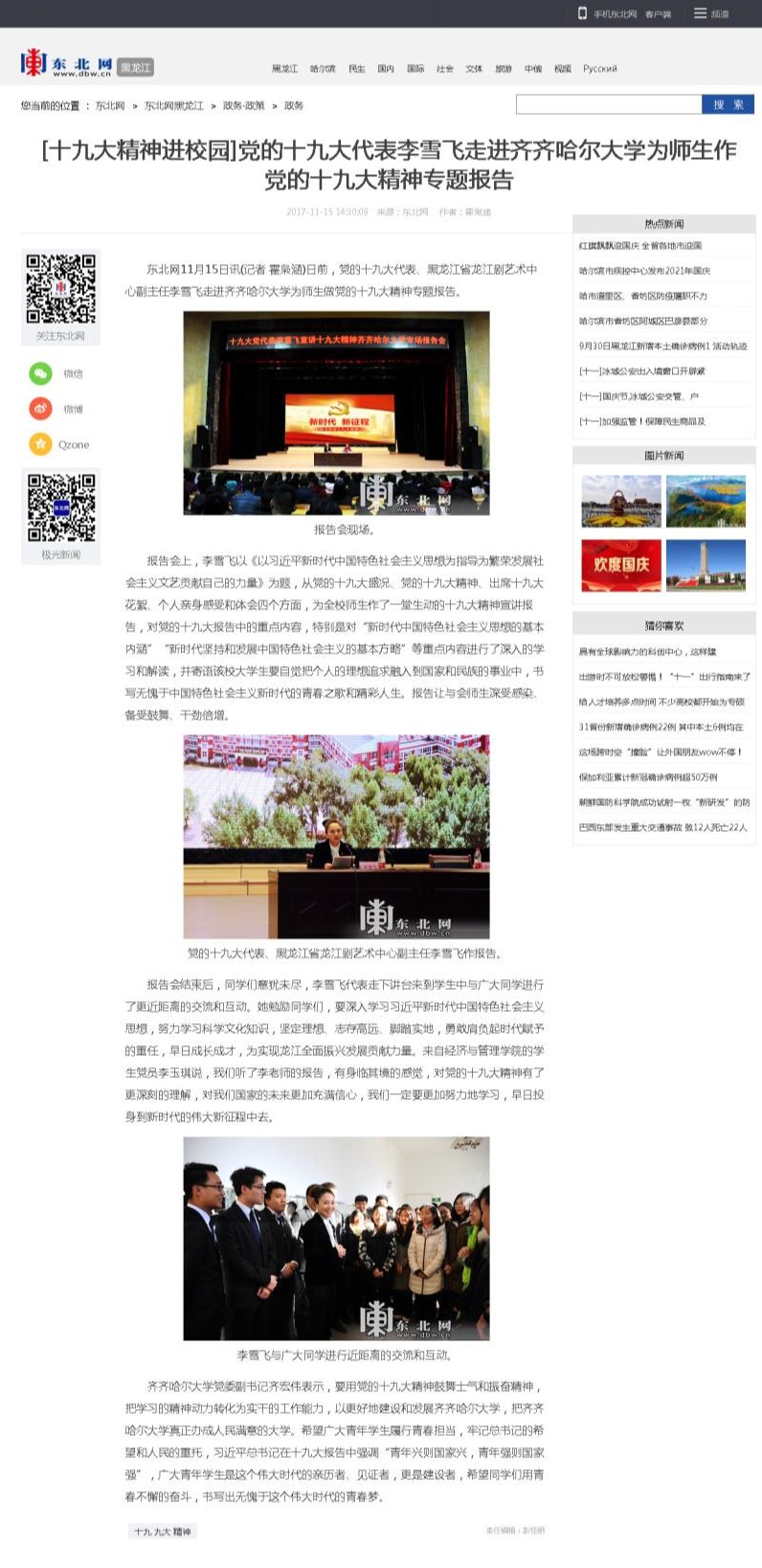 【东北网】[十九大精神进校园]党的十九大代表李雪飞走进万象城AWC官方网站为师生作党的十九大精神专题报告