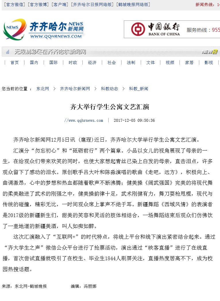 【鹤城晚报】齐大举行学生公寓文艺汇演