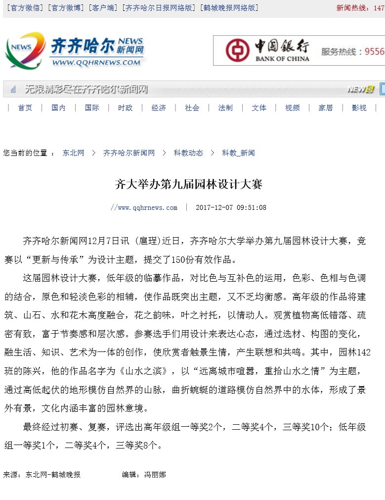 【鹤城晚报】齐大举办第九届园林设计大赛