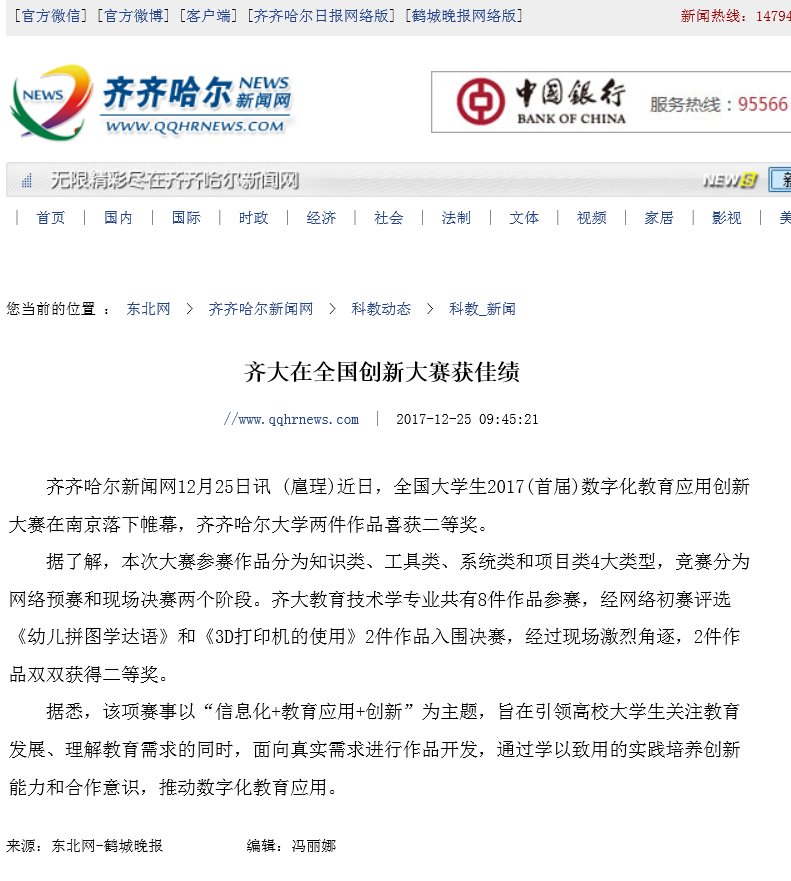 【鹤城晚报】齐大在全国创新大赛获佳绩