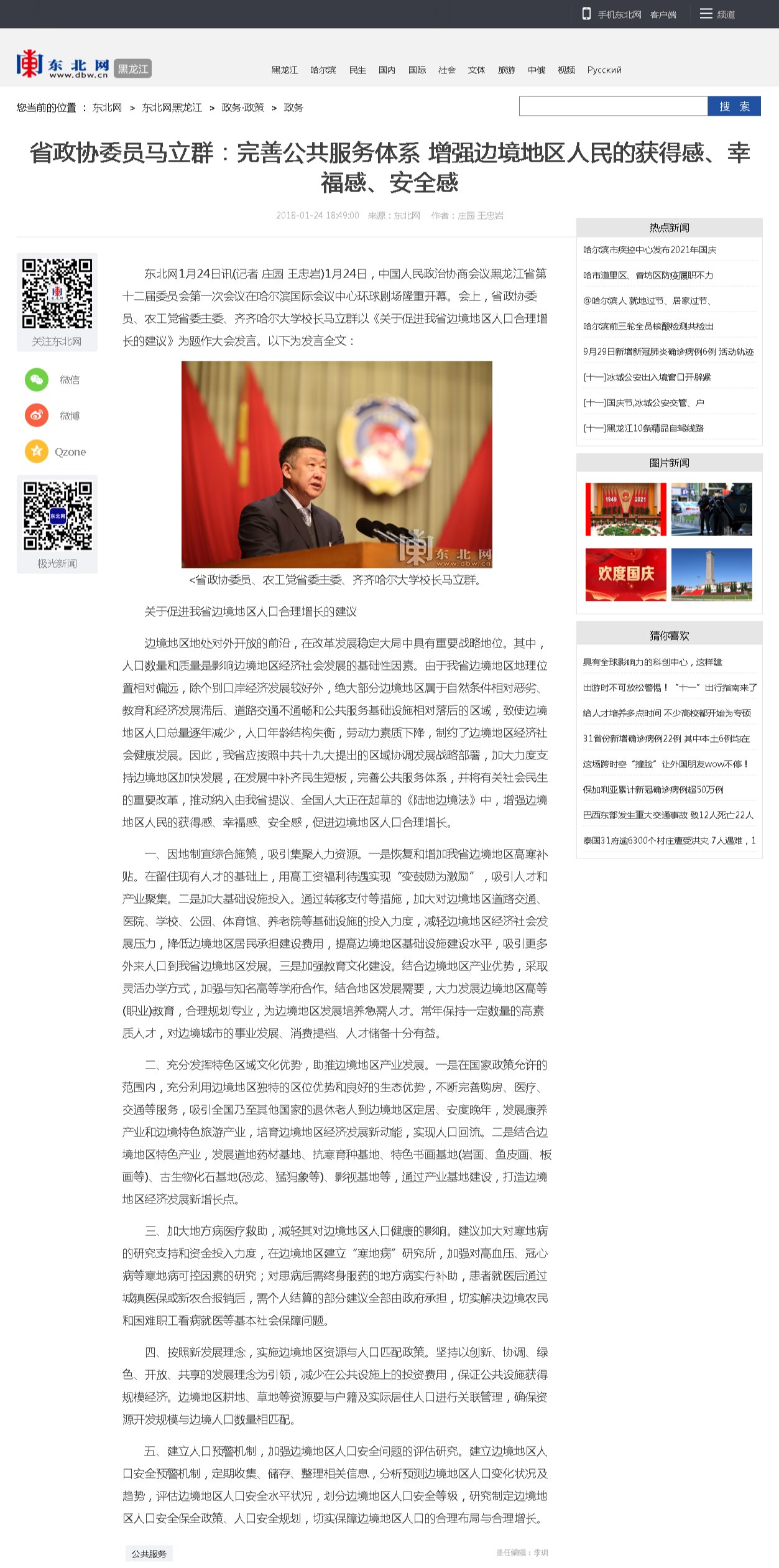 【东北网】省政协委员马立群:完善公共服务体系 增强边境地区人民的获得感、幸福感、安全感