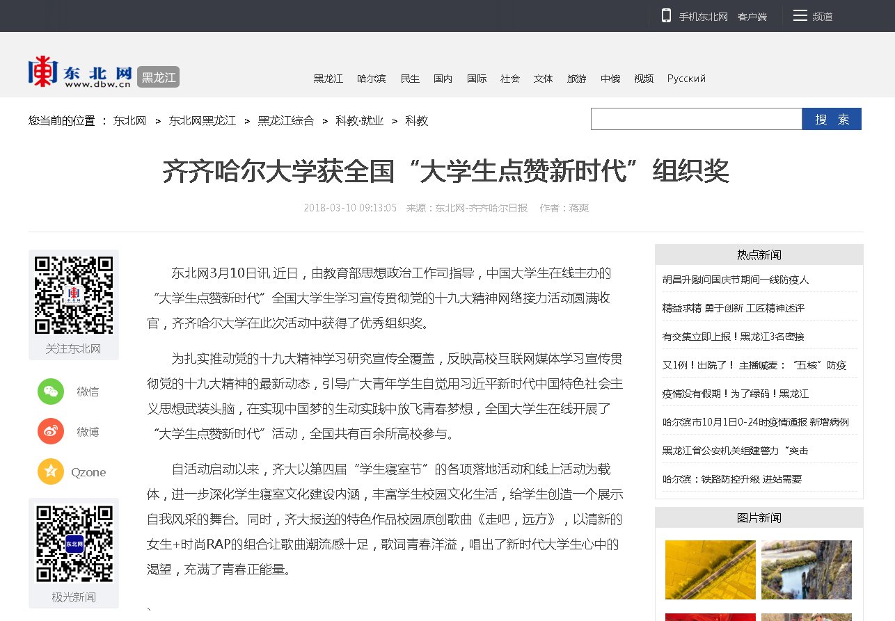 【齐齐哈尔日报】齐大获全国“大学生点赞新时代”组织奖