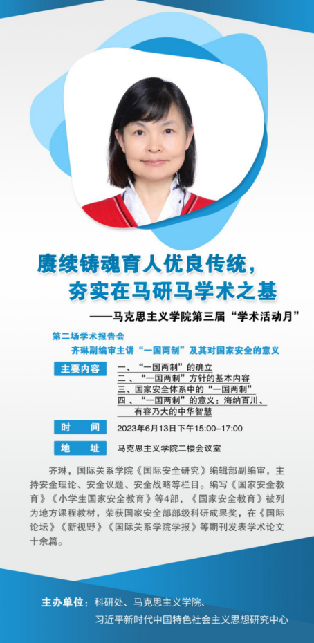 [马克思主义学院]学术报告---“一国两制”及其对国家安全的意义