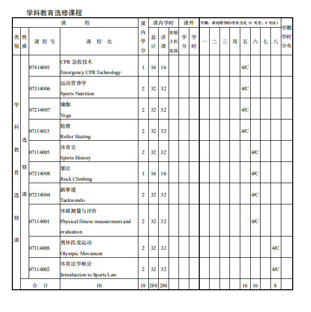 体育学院体育教育专业(师范类) 本科专业人才培养方案