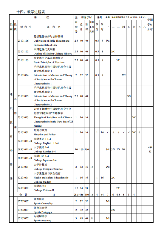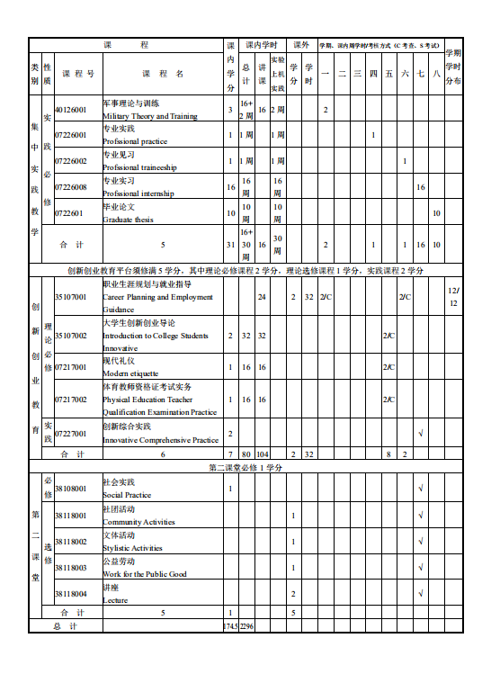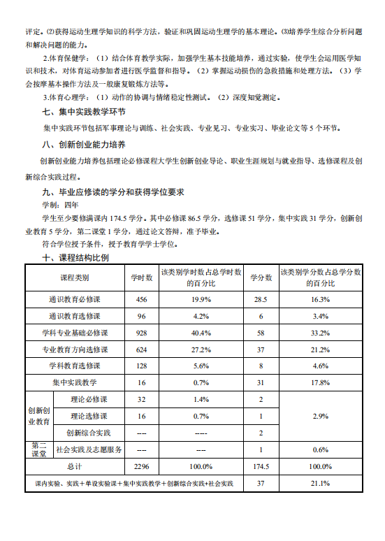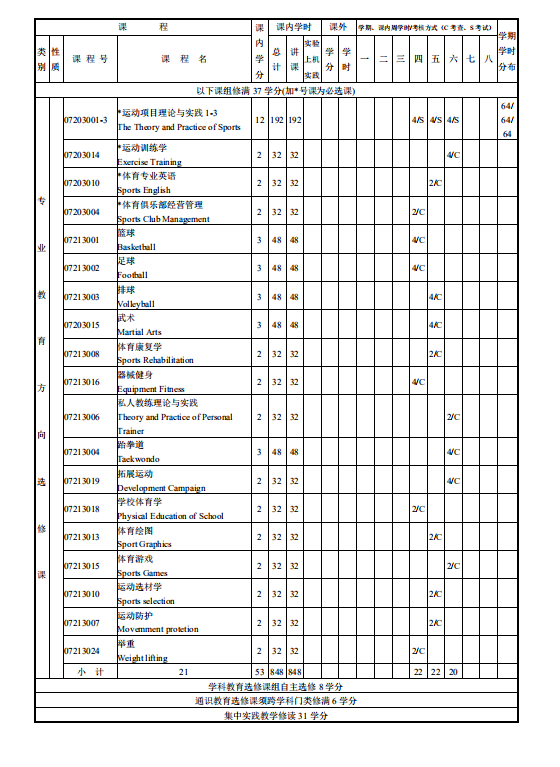 体育学院体育教育专业(师范类) 本科专业人才培养方案