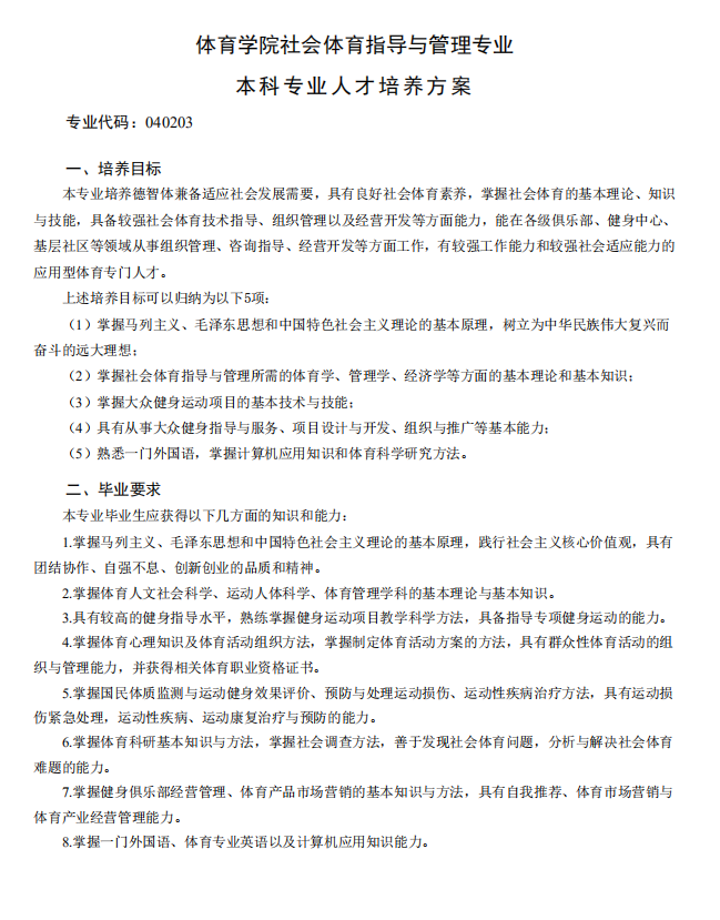 体育学院社会体育指导与管理专业 本科专业人才培养方案