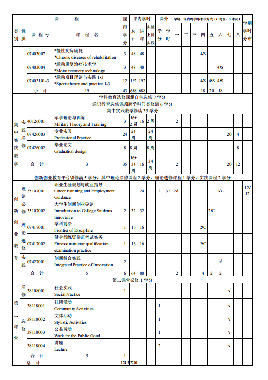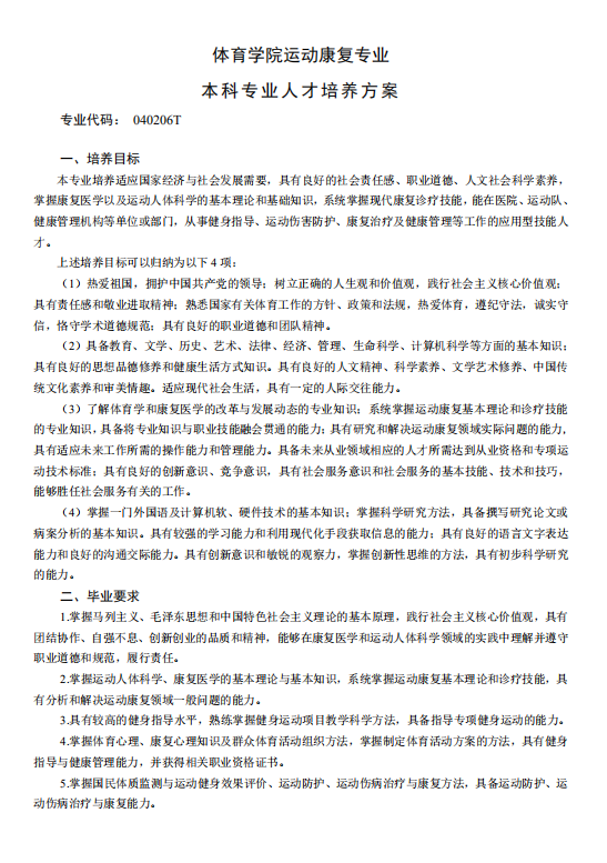 体育学院社会体育指导与管理专业 本科专业人才培养方案