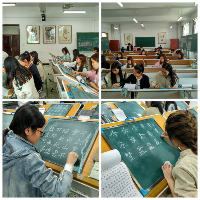 本次比赛分粉笔字组和钢笔字组,参赛选手们纷纷展示了各自书法的表现风格和书写能力。既有一气呵成、笔画遒劲、笔势生动的粉笔字书法,也有错落有致、刚柔并济的钢笔字书法。经过激烈的角逐,粉笔字组的孙佳艺、李想、白小丽,钢笔字组的韩静鑫、陈镜屹、史珊珊分别获得本次比赛各组别的一等奖。本次比赛,为学生搭建一个锻炼自己、展示风采的平台。