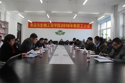 会上,副院长余世锋代表学院先后做了《食品与生物工程学院2018年行政工作报告》《食品与生物工程学院2018年度财务预算执行情况工作报告》;最后吕校长做了总结讲话。吕校长首先代表学校对学院2018年教职工大会的成功召开表示祝贺。讲话中,吕校长既肯定了学院所取得的成绩,又谈到了学院目前存在的主要不足。他希望学院领导班子带领全院教职员工借助学校教育思想大讨论与解放思想推动高质量发展大讨论的有利契机,要围绕学科发展、专业建设、教学改革、课程建设、科研立项、平台建设等很下功夫,群策群力,坚持问题导向,聚焦短板弱项,破解瓶颈发展难题;尤其是要在学科发展、专业认证、国家自然科学基金申报、优势特色学科发展建设上,要深入调研,努力查摆,分析问题,攻坚克难。